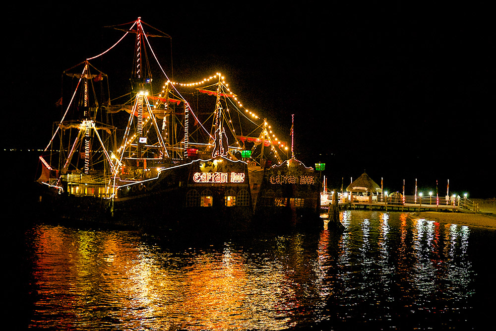 A Spectacular Pirate Show Entertainment complete with games with prizes Dinner (see the different options on the booking section) Open bar from the moment you step aboard Historical Pirates stories Sword fights and exciting music.